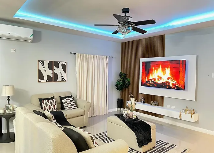 El apartamento está equipado con instalaciones de autoservicio como horno de microondas, hervidor eléctrico y nevera, lo que ofrece a los huéspedes la oportunidad de preparar sus propias comidas. El restaurante Usain Bolt's Tracks & Records sirve platos de cocina jamaicana y se encuentra relativamente cerca de la propiedad. El aeropuerto Internacional Norman Manley está a sólo 25 km.